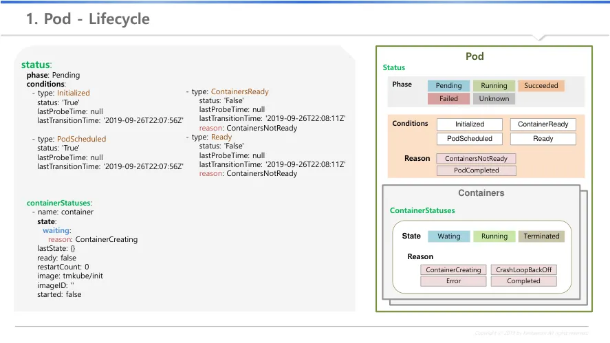 pod가 생성되면서 실행하는 단계의 상태를 보여줌
